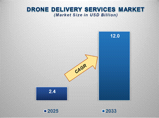 The global drone delivery services market is experiencing rapid expansion, driven by advancements in autonomous technologies, rising consumer expectations for fast delivery, and increasing demand for contactless logistics solutions. Valued at USD 2.5 billion in 2025, the market is projected to reach USD 24.8 billion by 2033, expanding at a robust CAGR of 33.2%.