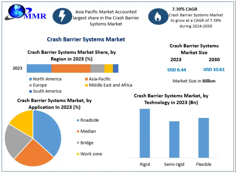 The Crash Barrier Systems Market is rapidly gaining traction globally, driven by the rising need for enhanced road safety and expanding transportation infrastructure. Valued at USD 6.44 billion in 2023, the market is projected to grow at a CAGR of 7.39%, reaching approximately USD 10.61 billion by 2030.