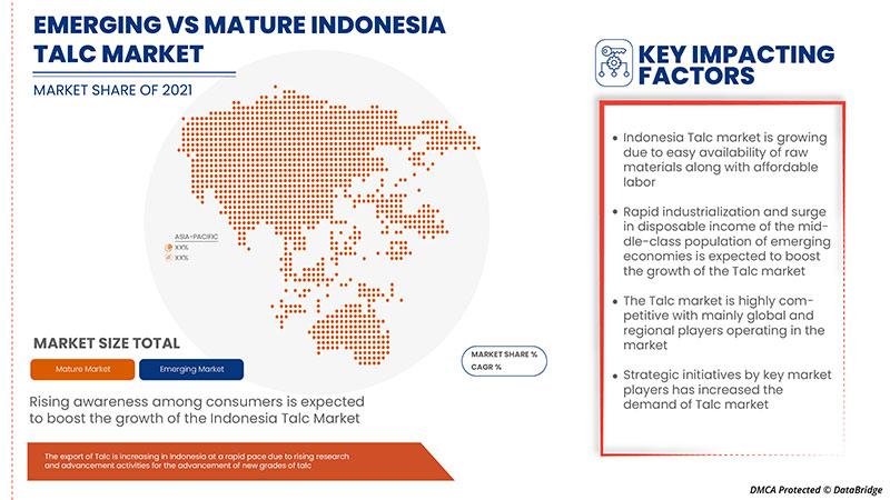 A comprehensive analysis of the market structure along with the forecast of the various segments and sub-segments of the market has been delivered through this Indonesia Talc Market report. The market is greatly transforming because of the moves of the key players and brands including developments, product launches, joint ventures, mergers, and acquisitions that in turn change the view of the global face of Indonesia Talc Market industry. The Indonesia Talc Market report is a window to the industry that explains what market definition, classifications, applications, engagements, and market trends are. The Indonesia Talc Market report defines CAGR value fluctuation during the forecast period for the market.