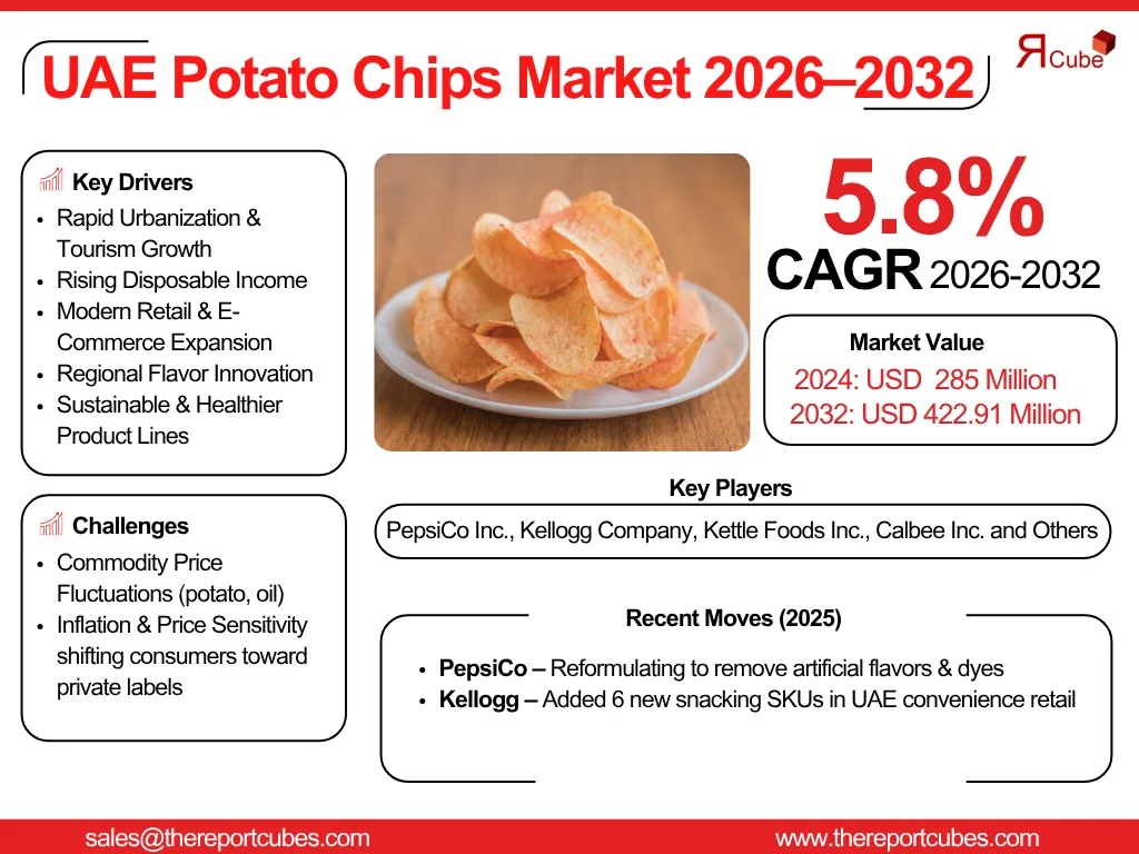 This report offers a complete analysis of the UAE Potato Chips Market, including size, growth patterns, key segments, and competitive outlook. It outlines essential drivers, challenges, and upcoming opportunities, supported by historical data and future forecasts. These insights, as per The Report Cube, make it a perfect fit for businesses planning strategic and sustainable growth.