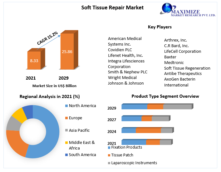Soft Tissue Repair Market size is expected to reach US$ 25.86 Bn. by year 2029 at a CAGR of 15.2% during the forecast period.