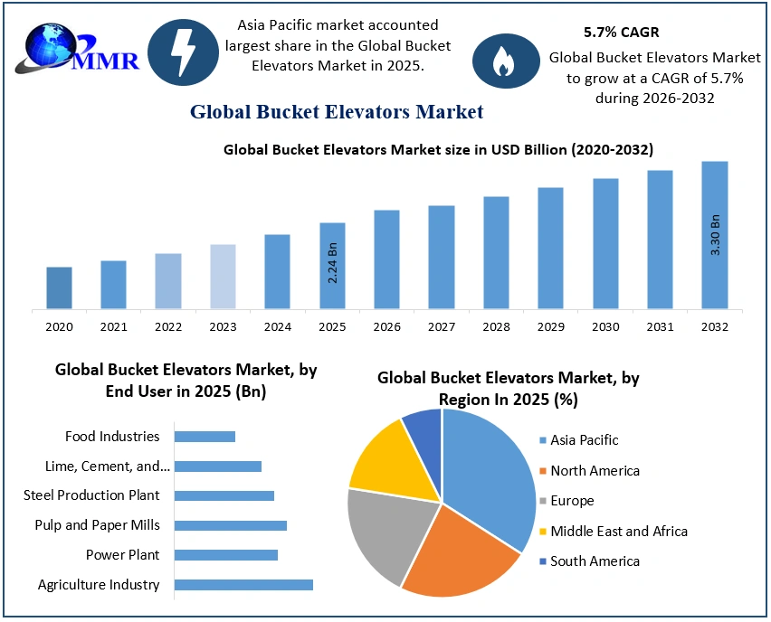 Bucket Elevators Market  size was valued at USD 2.24 Billion in 2025 and the total Bucket Elevators revenue is expected to grow at a CAGR of 5.7% from 2025 to 2032, reaching nearly USD 3.30 Billion by 2032.