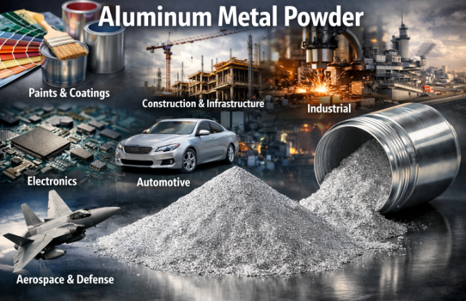 - The aluminum metal powder market is experiencing steady growth driven by its expanding use in construction materials, automotive lightweight components, aerospace alloys, industrial formulations, and electrical & electronics applications. Advancements in atomization and comminution technologies are enabling the production of high-purity, uniform, and application-specific powders with improved flowability, thermal conductivity, and reactivity, supporting wider adoption across high-performance sectors. The construction industry's rising use of AAC blocks and specialty chemicals, along with the automotive sector's focus on lightweight structures and enhanced thermal management for EVs, continues to boost demand. Additionally, the increasing utilization of aluminum powders in additive manufacturing, thermal spray coatings, and metallurgical processes combined with growth in electronics and defense applications requiring precise, high-strength materials is further strengthening the market's momentum across global markets.