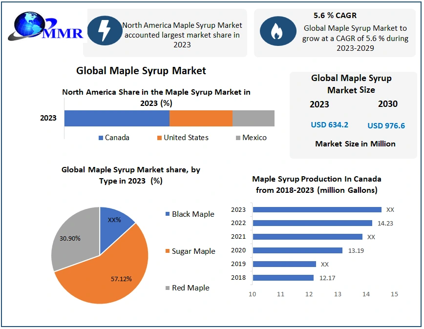 According to recent market analysis, the  global maple syrup market was valued at USD 634.2 million in 2023 and is projected to reach approximately USD 976.6 million by 2030 , growing at a  compound annual growth rate (CAGR) of 5.6%  during the forecast period. The rising consumer preference for organic and natural food ingredients, along with the increasing use of maple syrup in food processing industries, is expected to drive steady market growth.