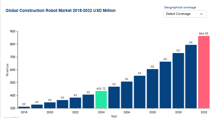 The drive toward enhanced site safety, labor shortage mitigation, and precision engineering is fueling a significant technological shift in the building sector. The Construction Robot Market was valued at USD 435.72 million in 2024 and is projected to reach USD 864.55 million by 2032, growing at a CAGR of 12.29% during the forecast period of 2025 to 2032. This growth is propelled by the integration of robotics in high-risk tasks and the increasing adoption of Building Information Modeling (BIM) connected hardware.