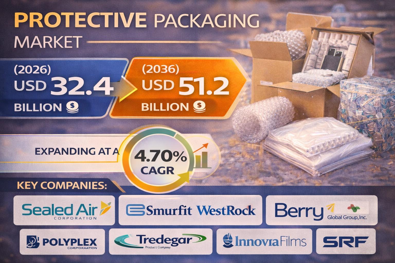 The global Protective Packaging Market is estimated at USD 32.4 billion in 2026 and is projected to reach USD 51.2 billion by 2036, expanding at a CAGR of 4.70% during the forecast period. Growth is being driven not merely by shipment volume expansion but by structural re-engineering of packaging systems to withstand increasingly complex logistics networks. Protective packaging is transitioning from a consumable cost component to a strategic infrastructure layer within global supply chains.