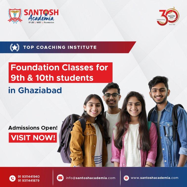 - Foundation Classes for 9th & 10th students in Ghaziabad by Santosh Institute focus on building strong academic fundamentals. The program improves conceptual clarity in core subjects and prepares students for future competitive exams. Regular assessments, expert guidance, and interactive learning methods help boost confidence. Santosh Institute supports early academic growth and long-term success through disciplined teaching.
