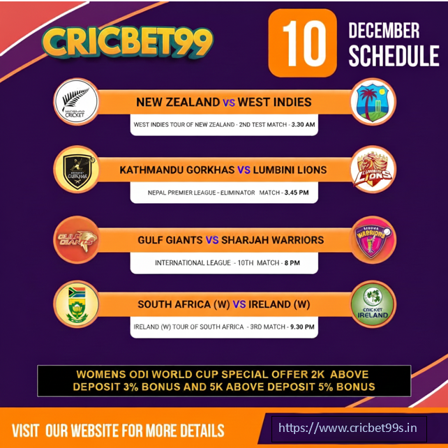 NZ vs WI 2nd Test, NPL Eliminator (KG vs LL), ILT20 Giants vs Warriors, and SA(W) vs IRE(W) — sabhi matches ke live updates, insights aur highlights sirf Gold365 par. Stay connected with the ultimate sports hub!”