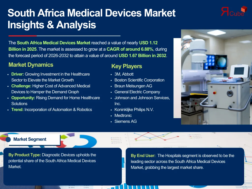 South Africa Medical Devices Market Value and Emerging Opportunities The South Africa Medical Devices Market reached a value of nearly USD 1.12 Billion in 2025. The market is assessed to grow at a CAGR of around 6.88%, during the forecast period of 2026-2032 to attain a value of around USD 1.67 Billion in 2032. The industry development is driven by the rising healthcare requirements, increasing chronic illnesses, and mounting demand for cost-effective solutions nationwide. https://www.thereportcubes.com/report-store/south-africa-medical-devices-market